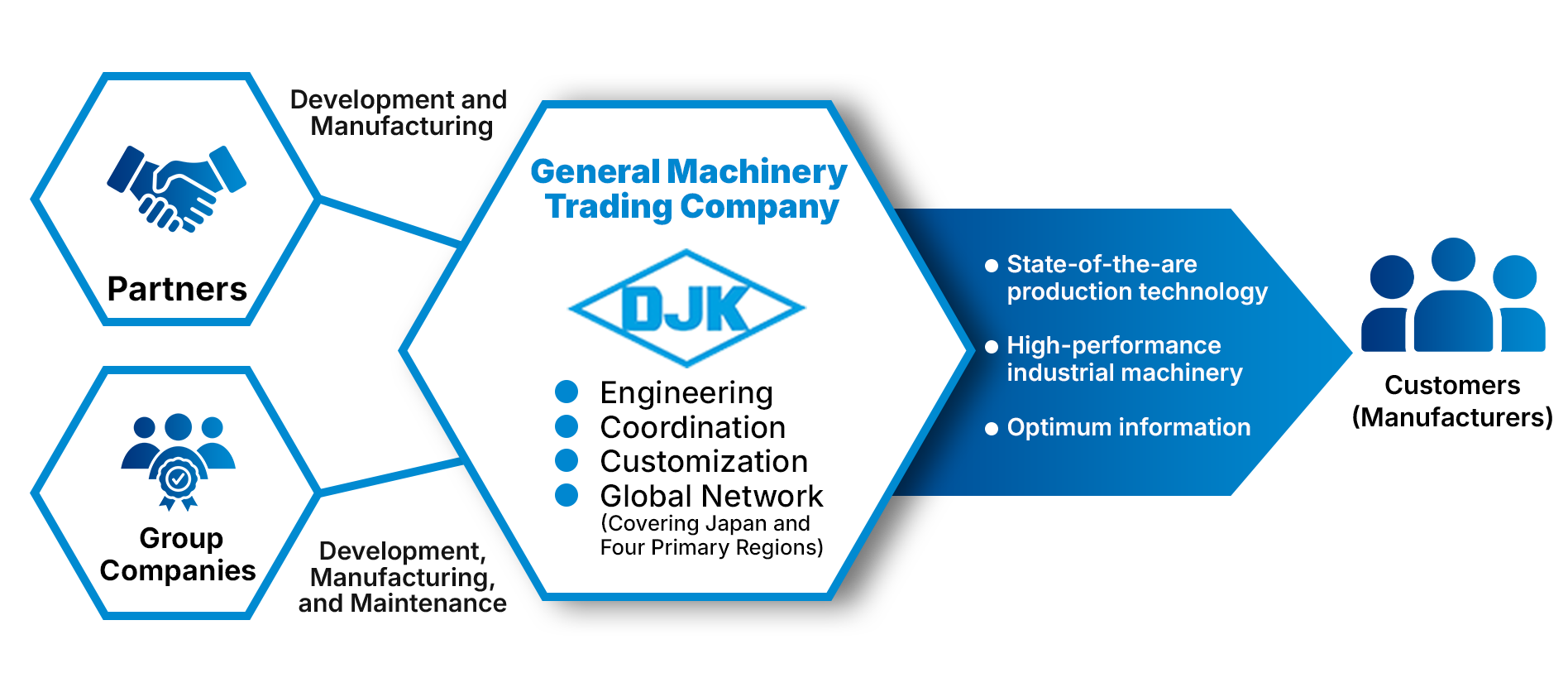 DJK has rolled out a business model rooted in each region, which is mainly based on market-related information collection and technical support through business activities driven by local personnel who are familiar with on-the-ground business practices. Our Group’s cross-border one-stop services and total solutions contribute to improving production sites around the world.
