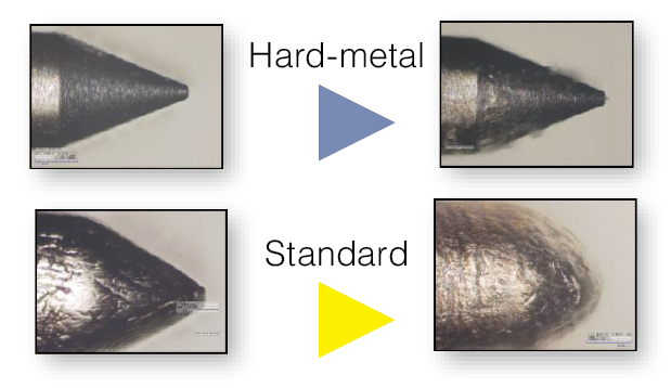 Even after three million contact cycles, the tips of DJK's new super-hard probes exhibit no wear. Up to 3,000,000 uses of stable contact that avoids pseudo-contact from slides
